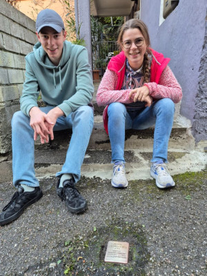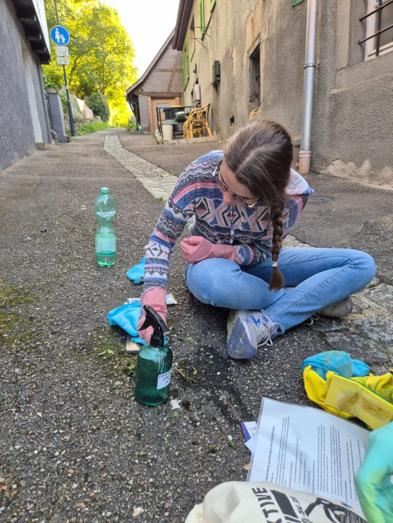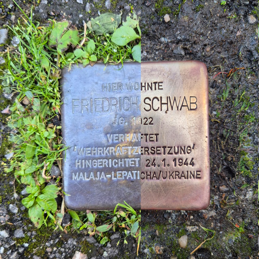 Zwischen 17 und 18 Uhr reinigten drei Mitglieder der Jugendgruppe zwei Stolpersteine in der Mühlacker Innenstadt.